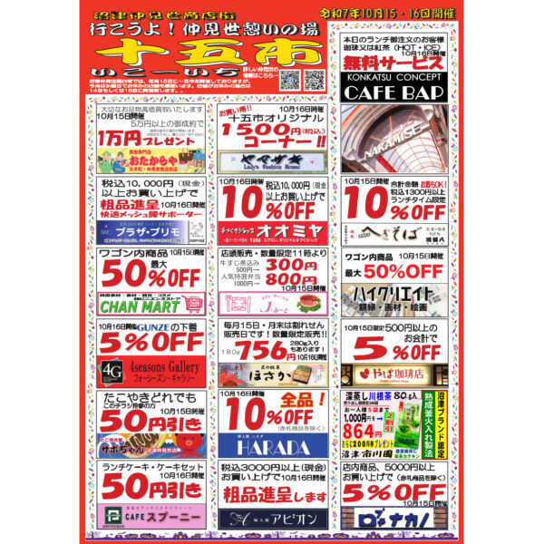 今月は15日がお休みの店舗の多い水曜日の為、15日、16日での開催となります。