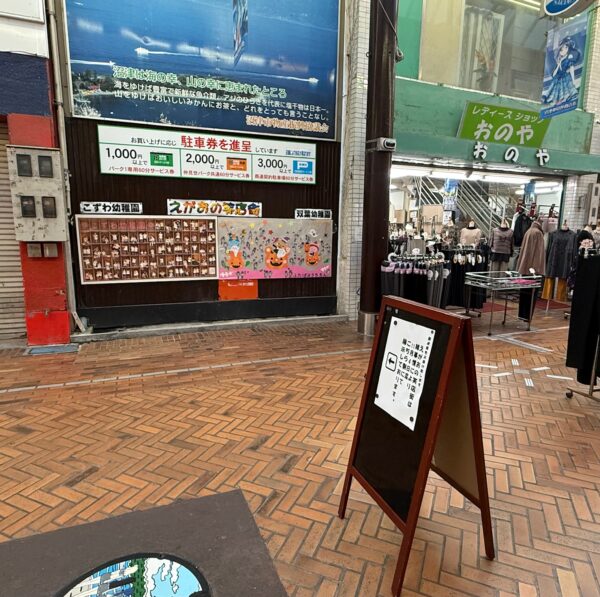 諸事情により、えがおの笑店街の展示パネルをマルサン書店前より、婦人服おのや隣の掲示板に11月の4日迄移動致します。
