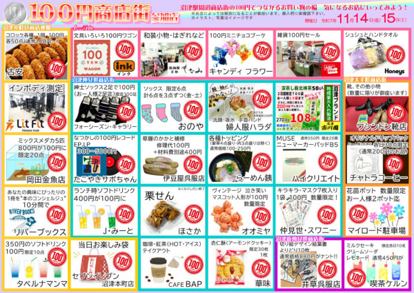 R7年11月14日、15日は100円町店街の日!
