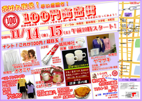 R7年11月14日、15日は100円町店街の日!