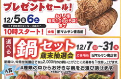 12月5日(金)・6日(土)はお米のプレゼントセールを開催します。 12月7日~31日は選べる鍋セット歳末抽選会を行います。 ……