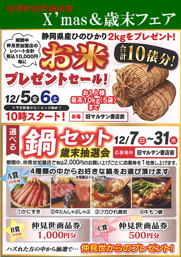 12月7日~31日は選べる鍋セット歳末抽選会を行います。