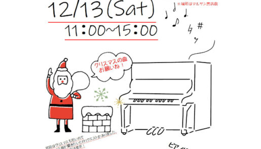 12月13日はストリートピアノの日です。 今月はクリスマスがあるのでクリスマスの曲のリクエストがありました。 皆様、是非、是非来て下さいね。 ……